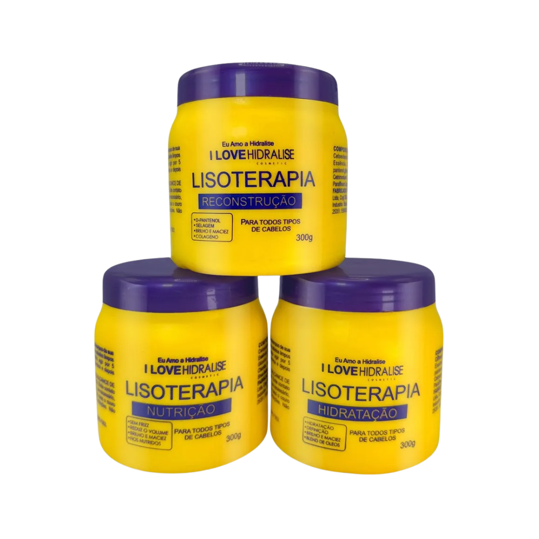 O Kit Cronograma Capilar Lisoterapia 300g oferece um tratamento completo e inteligente para restaurar a saúde, força e brilho dos cabelos em três etapas fundamentais: